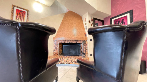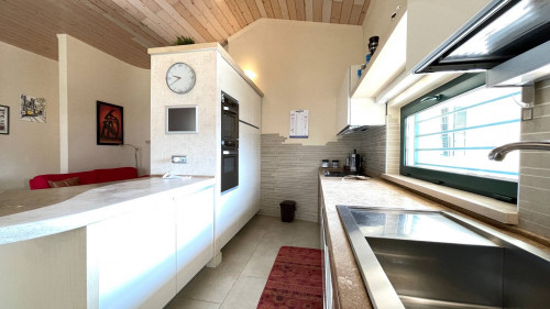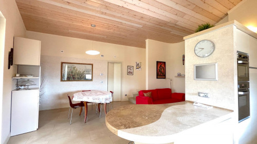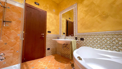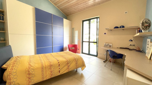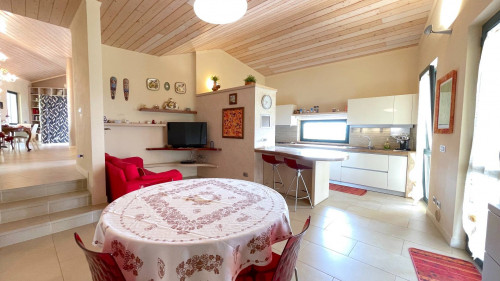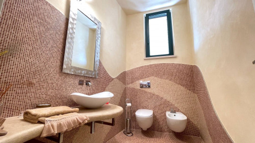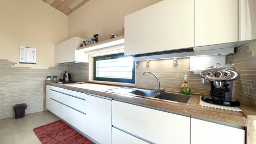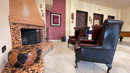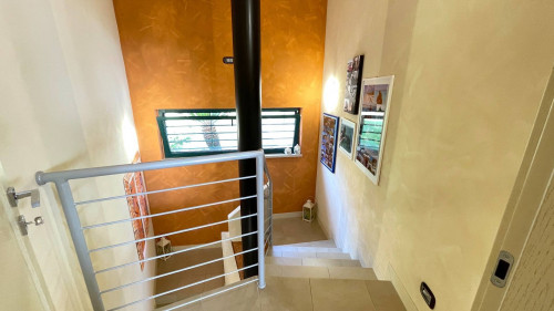 Al piano terra, sarete accolti da un ampio locale salone open space, arricchito da una meravigliosa cucina a vista in muratura e mosaico, un camino accogliente, una camera da letto doppia e un bagno con una vasca angolare per momenti di relax. Una scala interna collega il piano terra al piano superiore, mentre un ampio garage può ospitare fino a tre autovetture. Un locale lavanderia, dotato di un vano montacarichi collegato con la lavanderia al piano superiore, e un locale tecnico completano questa parte della villa. Tutti questi spazi godono di accesso diretto dalla corte antistante la residenza.