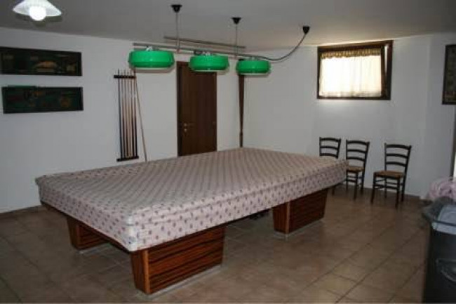Al piano seminterrato, di mq. 150 circa, troviamo una bella taverna dotata di cucina, uno spazio dedicato al tempo libero con una sala biliardo, un bagno ed un garage doppio.