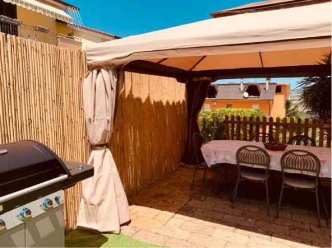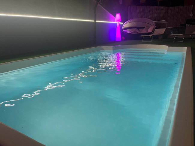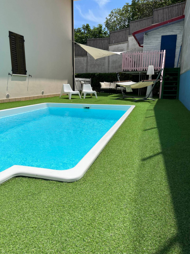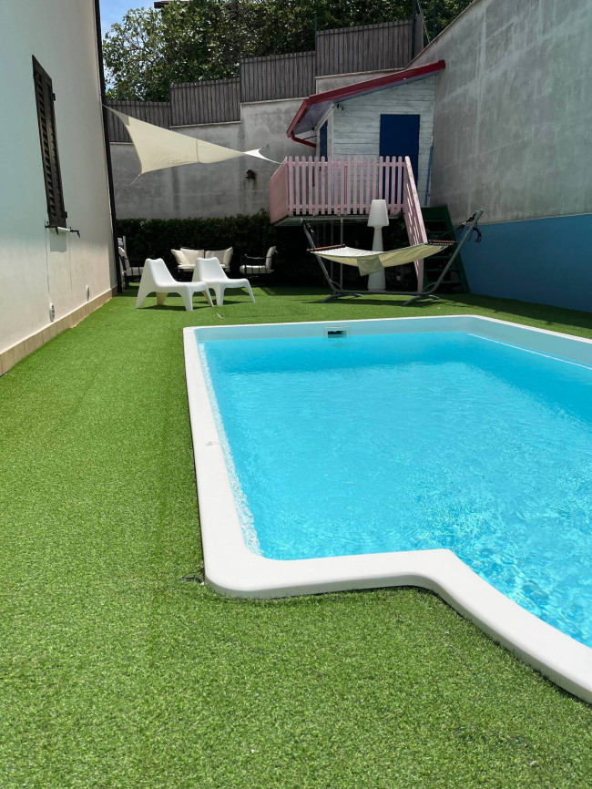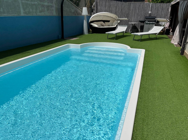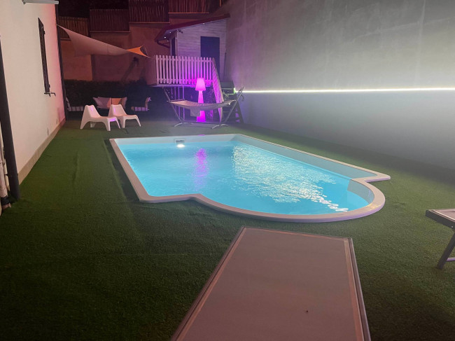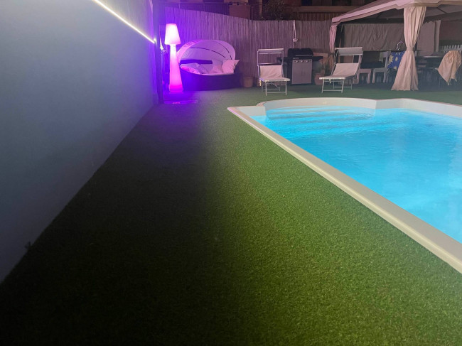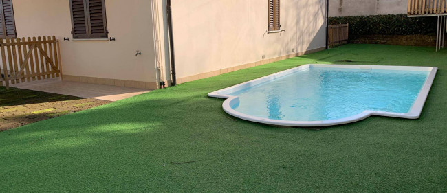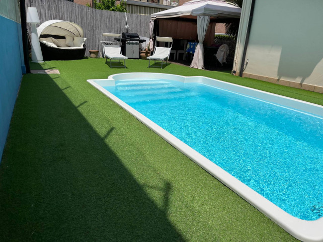 Il giardino, curato e ben tenuto, è in parte pavimentato ed in parte piantumato ed ospita una piscina scoperta da sfruttare nei mesi estivi per trascorrere momenti di tranquillità e relax, con la famiglia e con gli amici.