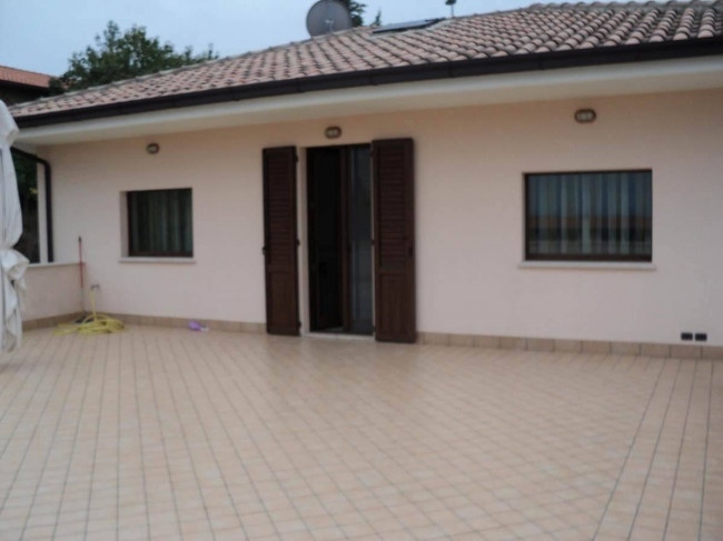 Al piano terra, di circa mq. 160, è dislocato un ampio soggiorno, la cucina abitabile, tre ampie camere da letto di cui la padronale con bagno e guardaroba en-suite, il porticato esterno di mq. 25 da cui si accede al giardino che circonda la villa su tutti i lati.
