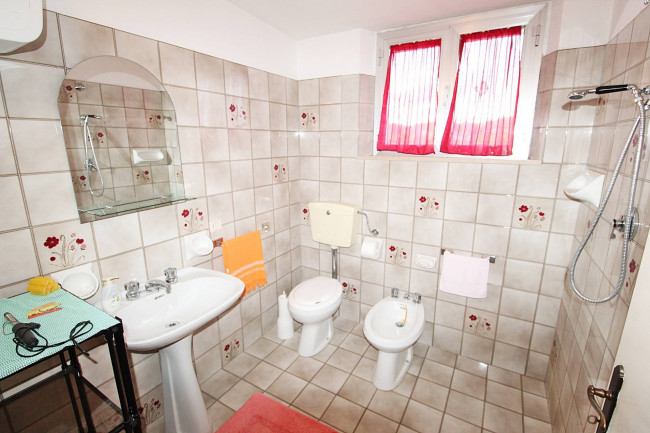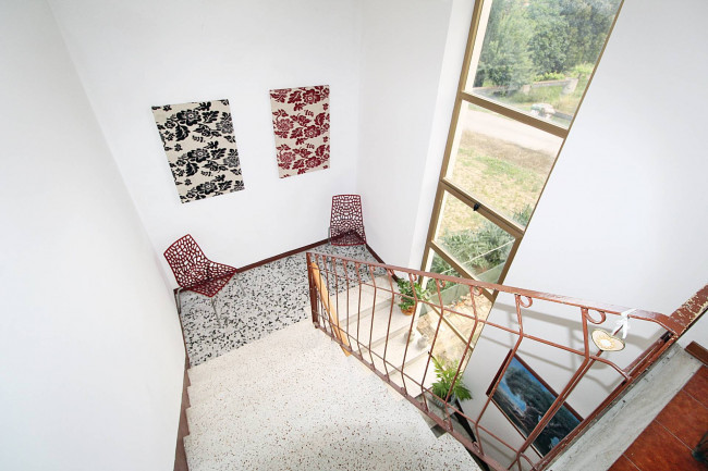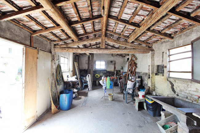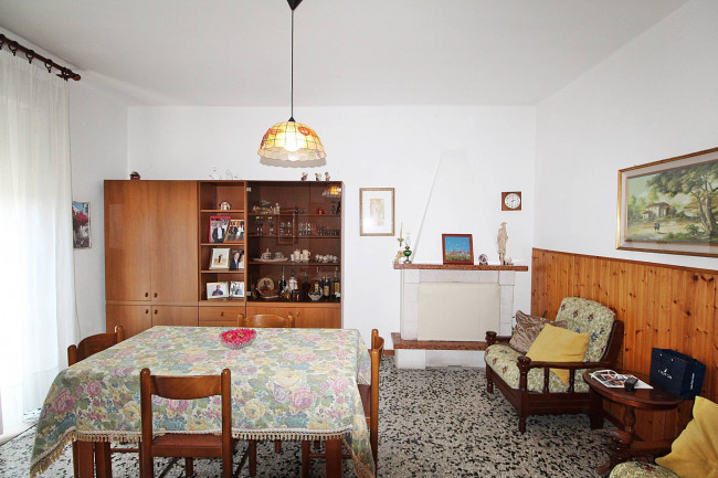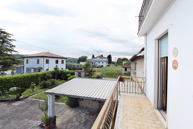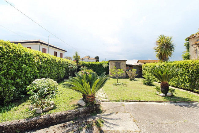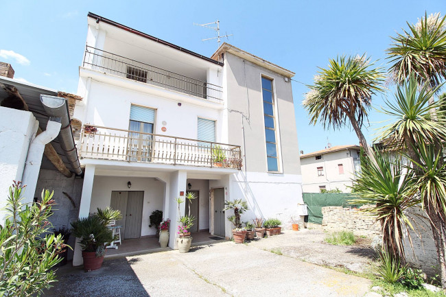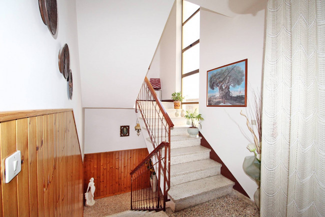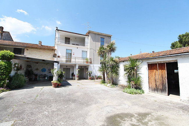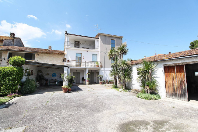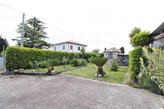 Casa intera delle dimensioni di mq 320 circa, disposta su tre livelli, in aderenza su un lato, avente ingresso indipendente e ccomposta da Piano terra con rustico, cantina, rimessa e bagno, piano primo composto da ampio soggiorno, cucina abitabile, corridoio, due camere da letto, bagno e balcone, piano secondo composto da soggiorno/cucina, due camere da letto, bagno e terrazza coperta. Completa la proprietà un giardino privato recintato di mq 300 circa, porticato, rimessa di mq 40 circa per il ricovero di più autovetture e tre posti posti auto.
