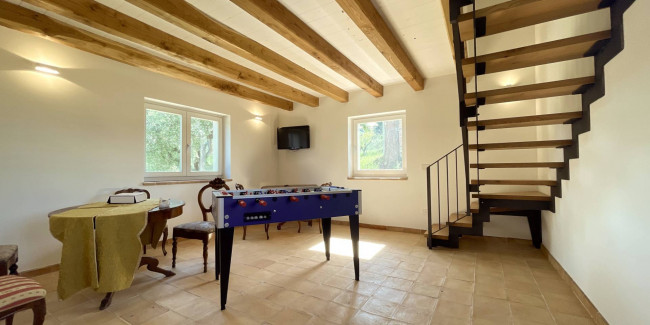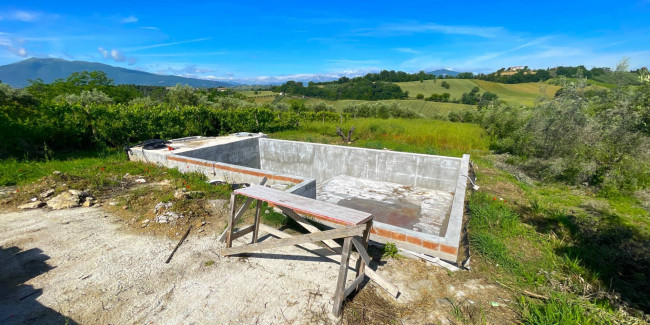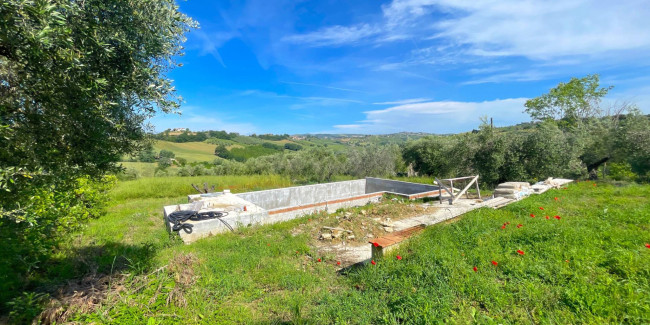 Completa la proprietà un terreno agricolo circostante di circa 7 ettari, su cui sono presenti una piscina (allo stato grezzo avanzato) dimensioni mt. 10 x 5 con fossa per i tuffi, un annesso di circa 20 mq. adibito a spogliatoio/bagno, oltre 100 piante di ulivo, piccolo vigneto e la restante porzione coltivato a seminativo.