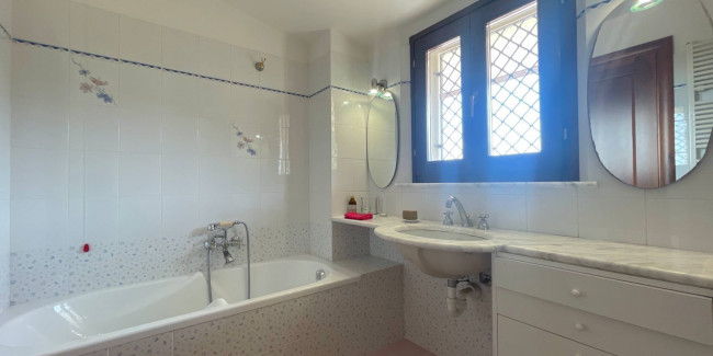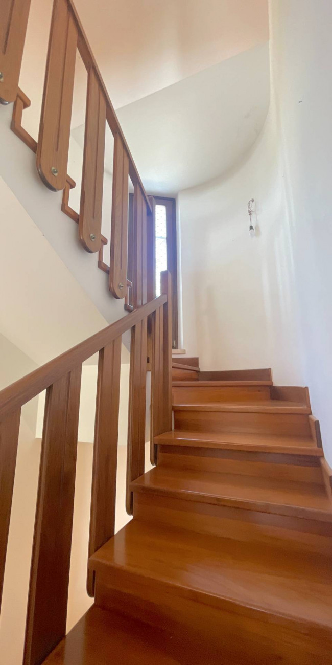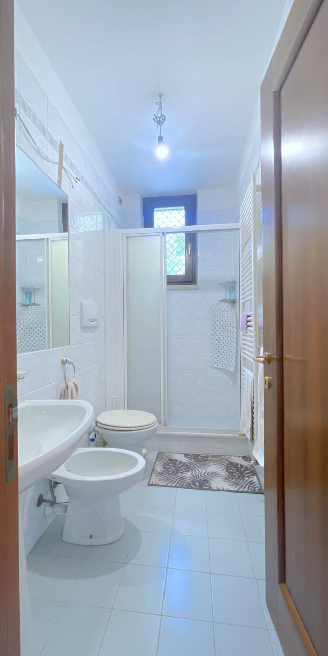 - Piano secondo, leggermente mansardato, con due grandi camere da letto, bagno con vasca e accesso a una terrazza panoramica con suggestiva vista mare.