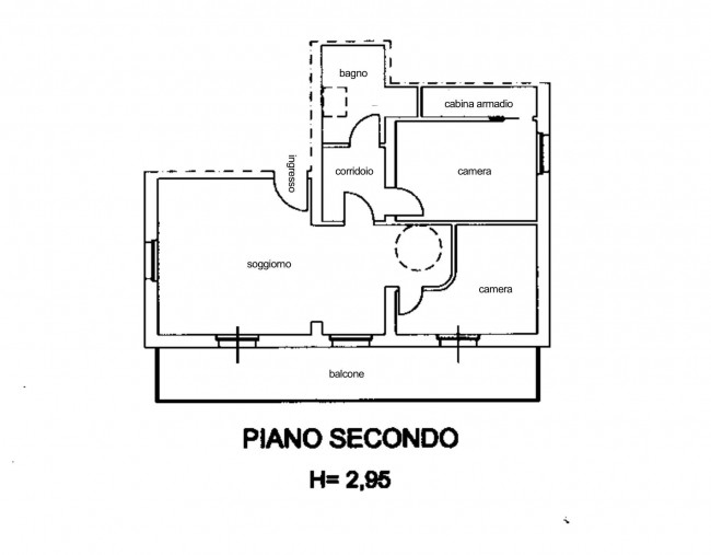 Al piano secondo l'alloggio propone un ingresso su spazioso soggiorno, due camere da letto (una matrimoniale con cabina armadio ed una doppia), ampio bagno con finestra e box doccia, corridoio di disimpegno e grande balcone di circa 20 m², perfettamente vivibile durante la bella stagione.