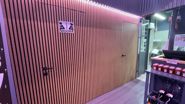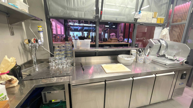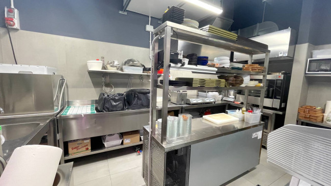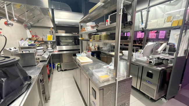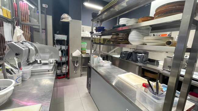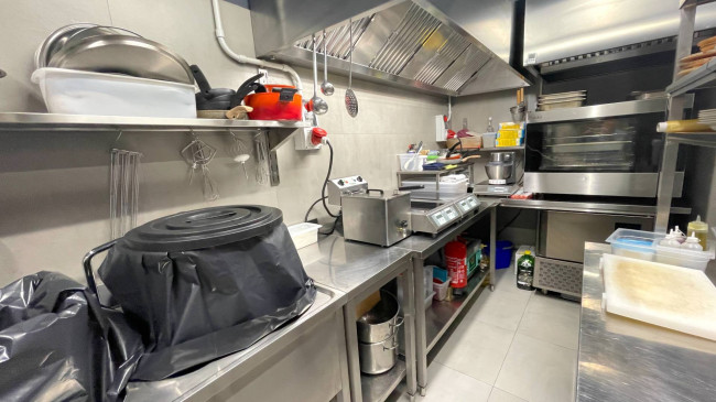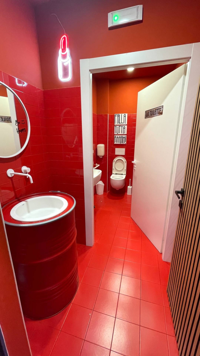 Fornita di bagno ed antibagno clienti e di spogliatoio e bagno dipendenti, oltre che di canna fumaria e impianto di aspirazione.