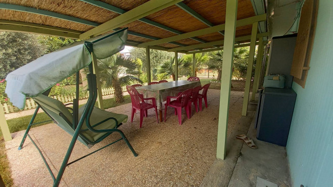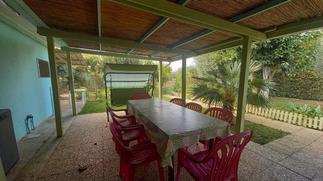 La proprietà si presenta completamente recitata e suddivisa in zona relax con accessorio, comodo portico, angolo barbeque e forno a legna e zona orto con piante di ulivo e frutta.